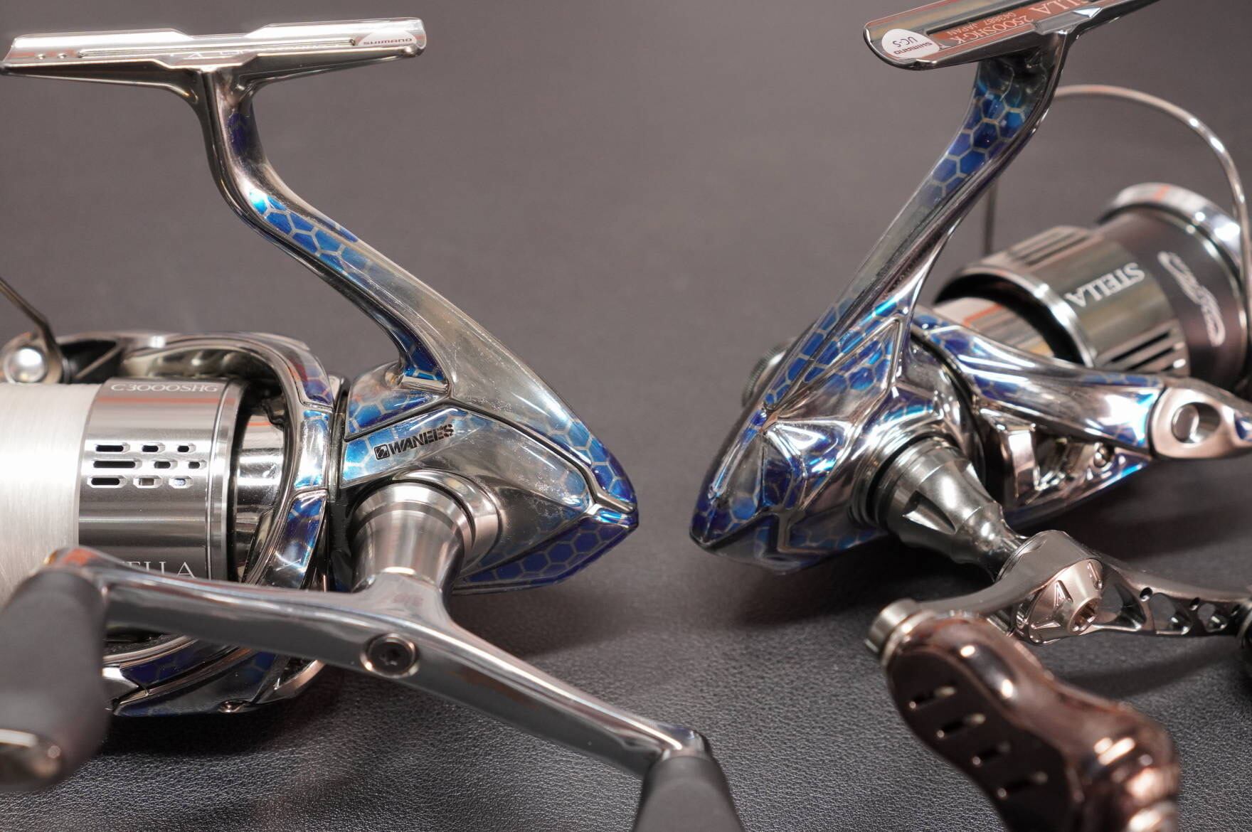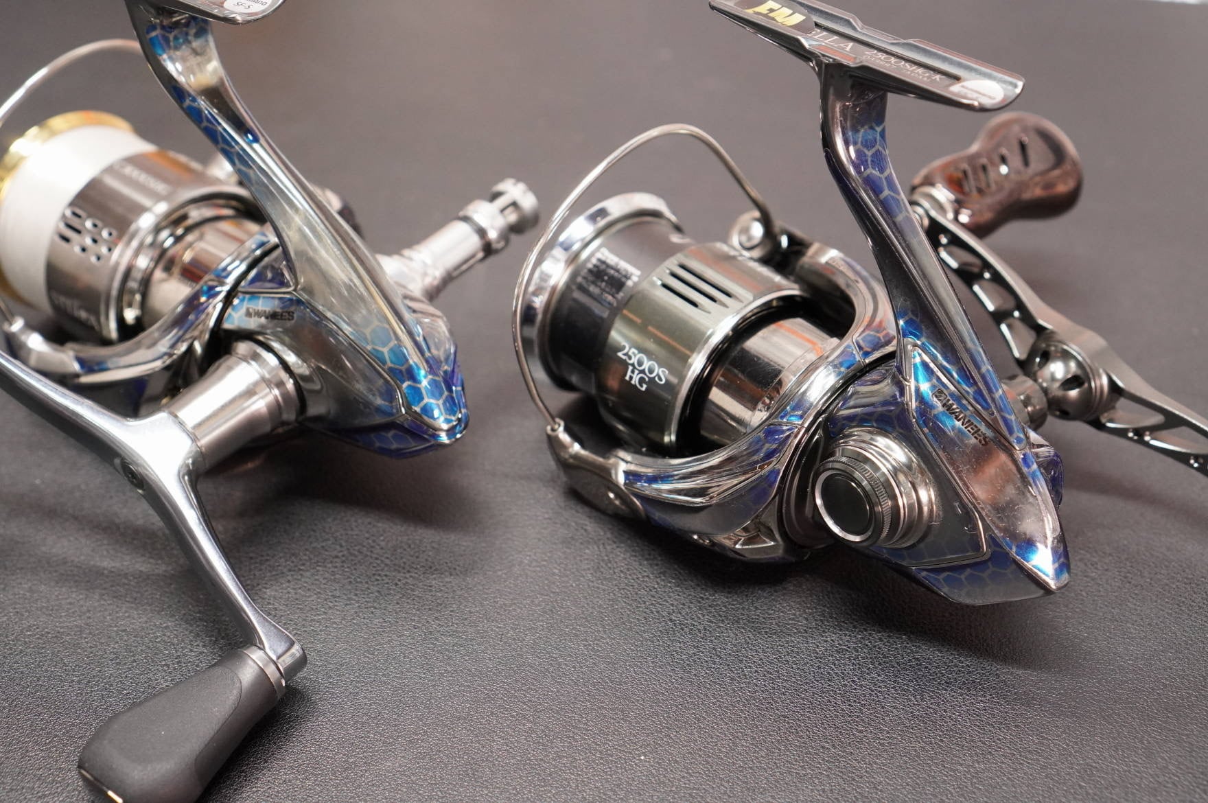 ラウンドエッジ仕様のクリアコーティングは、普通のステッカーとは違い、高級感のある仕上がりで、リール本来の質感を損いません。